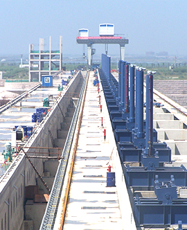 公司專業(yè)生產(chǎn)的各類平面、弧型閘門,各類卷揚、門式、移動式啟閉機,各類清污機、攔污柵、升船機、壓力鋼管、錐形閥等超大型、大型水工金屬結(jié)構(gòu)件和各類起重機遠(yuǎn)銷全國26個省、市、自治區(qū),并出口到16個國家和地區(qū),廣泛應(yīng)用于全國重點工程建設(shè),如長江三峽永久性船閘工程、淮河蚌埠閘擴建工程、浙江溫州珊溪水利樞紐工程、四川岷江紫坪鋪水利樞紐工程、浙江省分水江水利樞紐工程、中國河口第一大閘曹娥江攔河大閘和港口、船舶制造企業(yè)等。